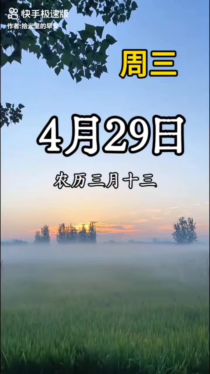 今天是四月二十二日星期三,农历三月初六。早上好呀,每一个清晨都是生活的起航,保持年轻的心态,迈着健康的步伐,向着幸福出发,用阳光的心态迎接每一天,活出最精彩的自己!
