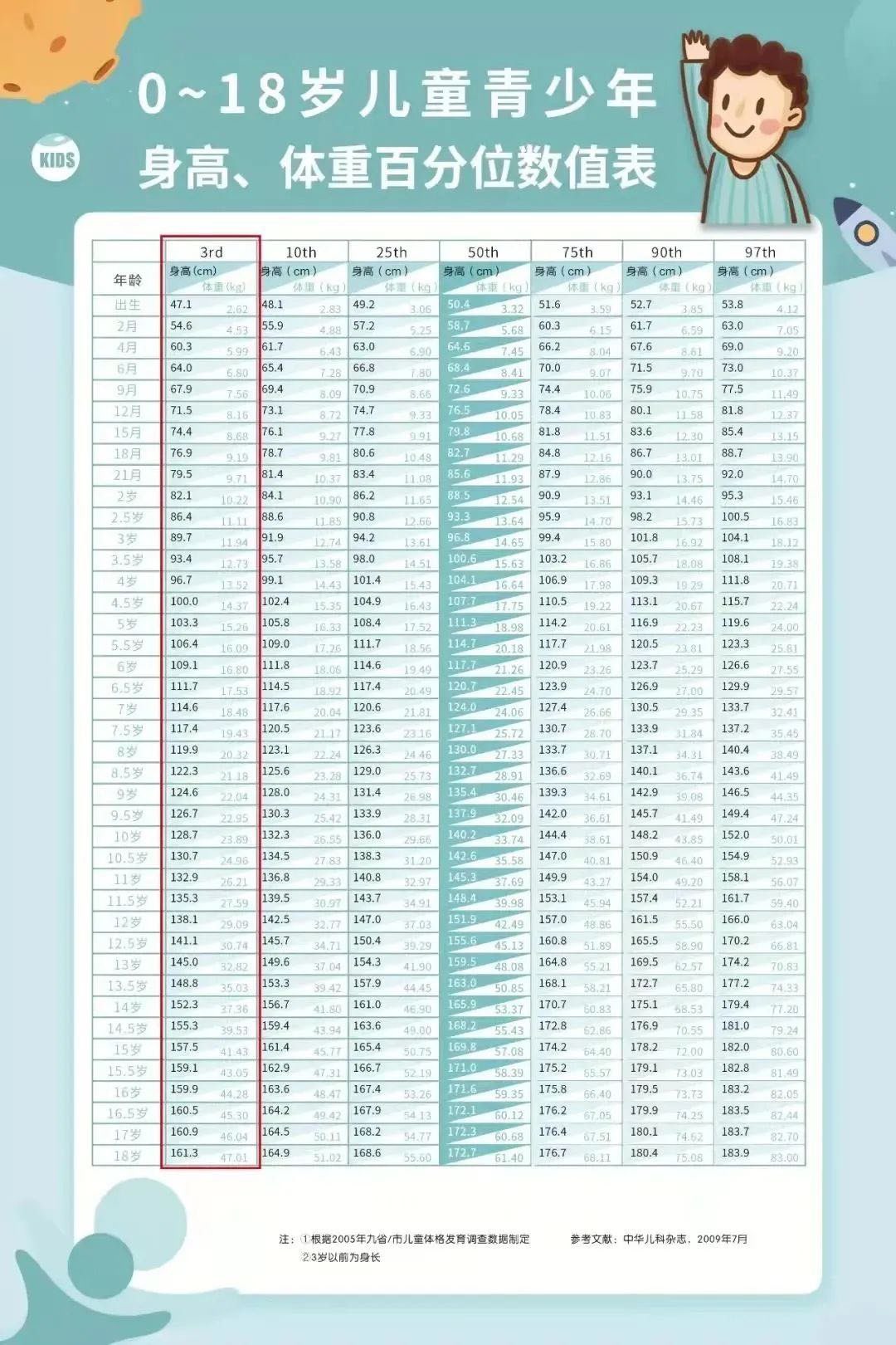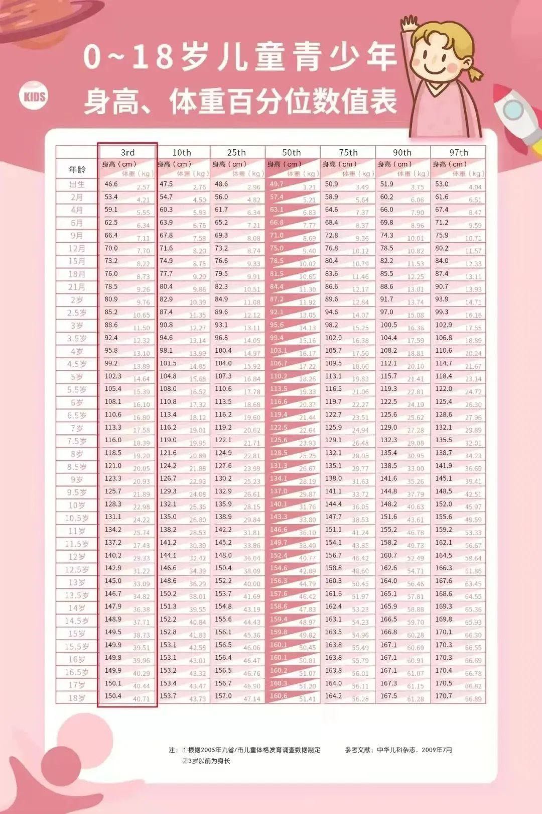 矮小症是指在相似生活环境下孩子的身高低于同性别、同年龄、同种族平均身高的两个标准差(-2SD),或者低于第三百分位(-1.88SD)。(参考下图儿童身高数值表)。