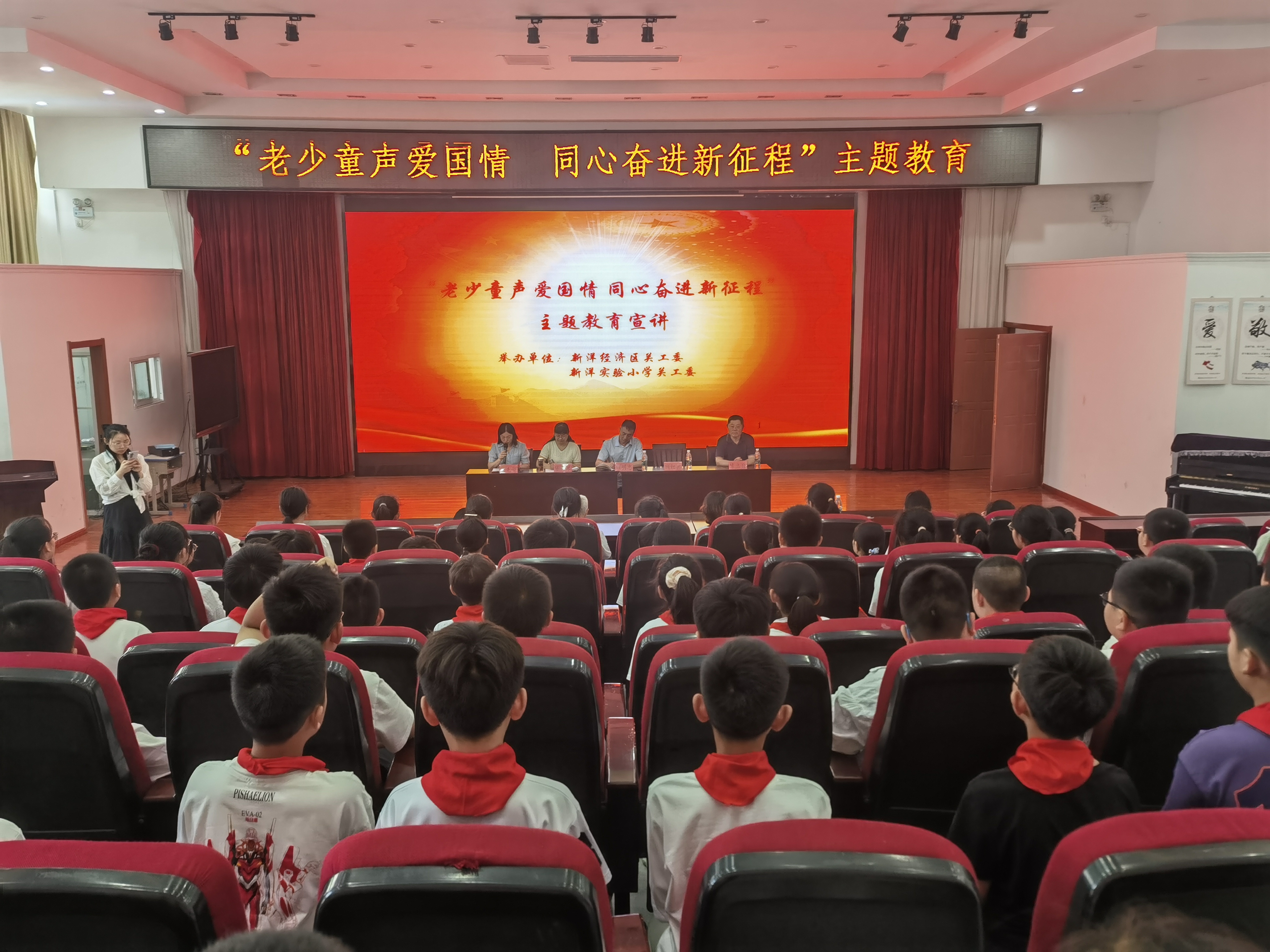 为进一步传承红色基因,坚定广大青少年爱党爱国信念,引导青少年学生系好人生第一粒纽扣,新洋经济区关工委在新洋实验小学学校举办“老少同声爱国情,同心奋进新征程”主题教育活动,活动由新洋实验小学工会主席陈大琴主持,办公室主任王先娟主讲,通过习近平总书记视察盐城新四军纪念馆重要讲话,盐城红色经典传承,把握红色历史,汲取奋进力量,教育引导新时代青少年,要牢记总书记的谆谆教诲,听党话、感党恩、跟党走,努力做到铭记历史、爱党爱国,勤奋学习、厚积薄发,为把强国建设、民族复兴伟业不断推向前进贡献青春力量。新洋经济区关工委顾明忠副主任对参加主题教育的青少年提出殷切希望,要求同学们“好好学习 天天向上 做德智体全面发展新时代接班人”。